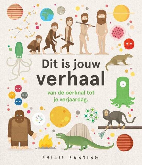 Dit prentenboek begint met het kleinste deeltje waaruit jij bent ontstaan. Je maak kennis met jouw bet-over-over-keer-miljoen-biljoen-triljoen-oma en reist door de tijd van het prille begin tot het moment dat je geboren wordt. Want jouw verhaal begint vroeger dan jouw geboorte. Dit is jouw verhaal van de oerknal tot je verjaardag.